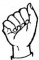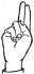 На ћирилици написано ВОЈНА БУКАРИЦА састоји се из 13 слова [?]. Исписано ћириличном једноручном азбуком за глувонеме: